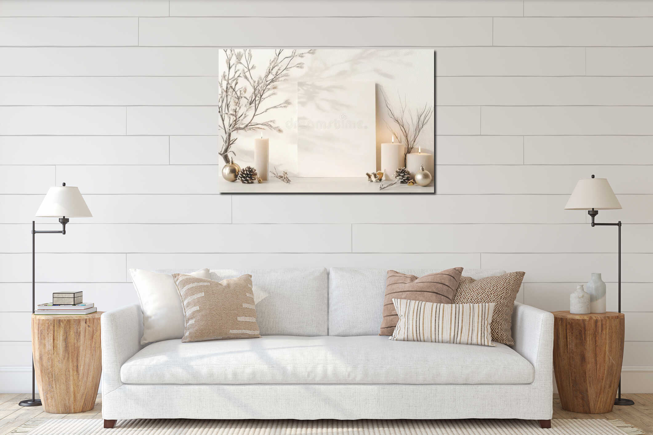 Elegant minimalist holiday scene with candles and gifts Canvas Print
